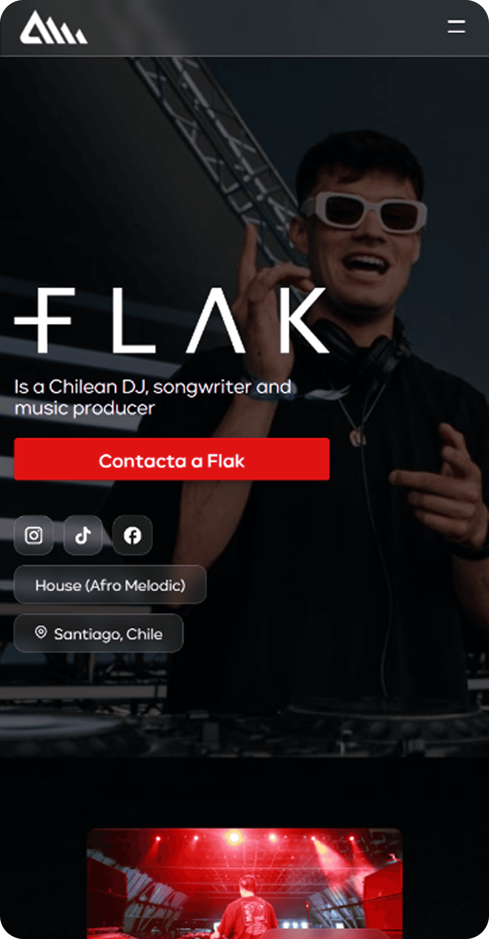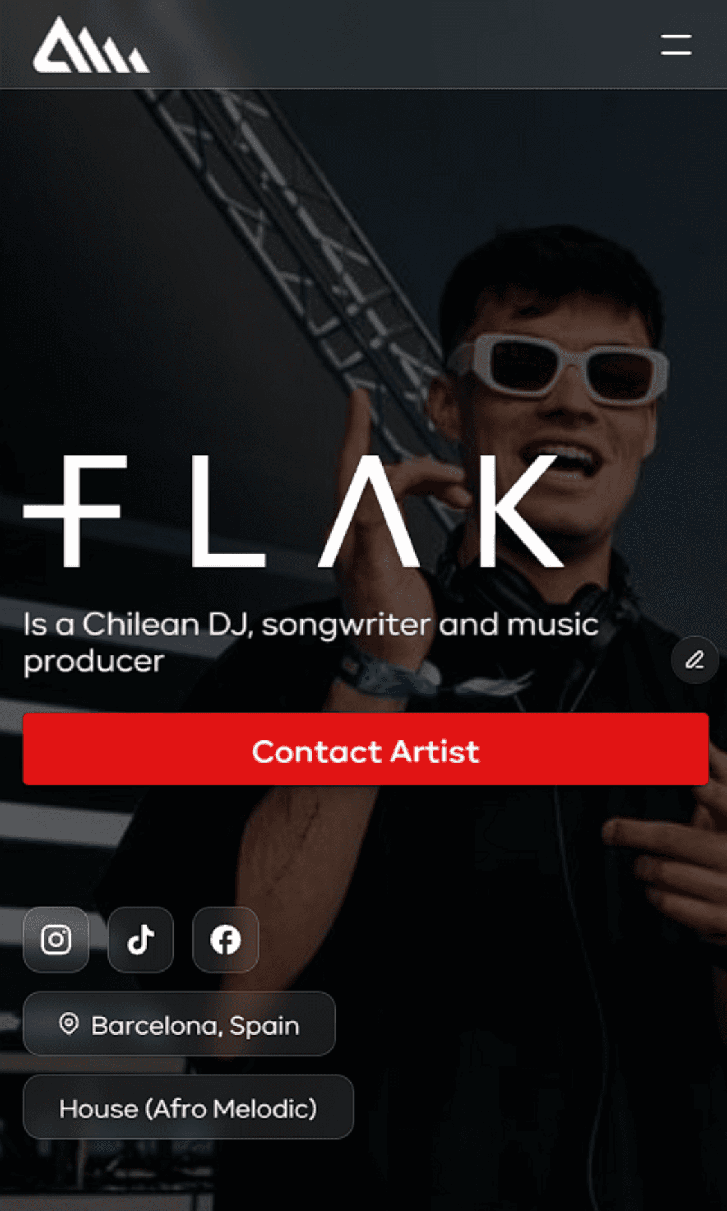 Los artistas pueden recibir bookings, solicitudes de contacto y mostrar su portafolio musical sin depender de managers o agencias, potenciando su independencia y credibilidad ante marcas, eventos o productores.