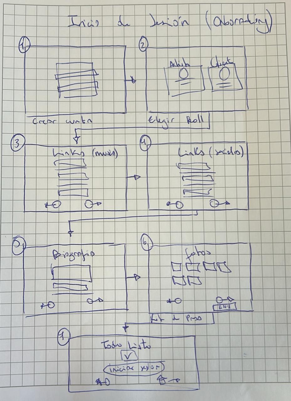 Con los flujos validados, se inició el desarrollo de la identidad visual de la plataforma, buscando reflejar la energía, autenticidad y profesionalismo del ecosistema musical emergente.